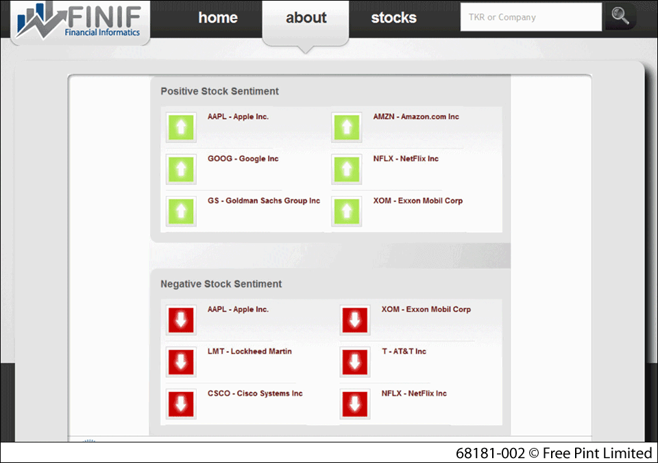 FINIF (www.finif.com) bills itself as an informatics platform that specialises in financial sentiment analysis and market chatter. The technology provides the capability to analyse financial data, news and opinion from sources such as Twitter, reputable news providers and Securities and Exchange Commission (SEC) filings.