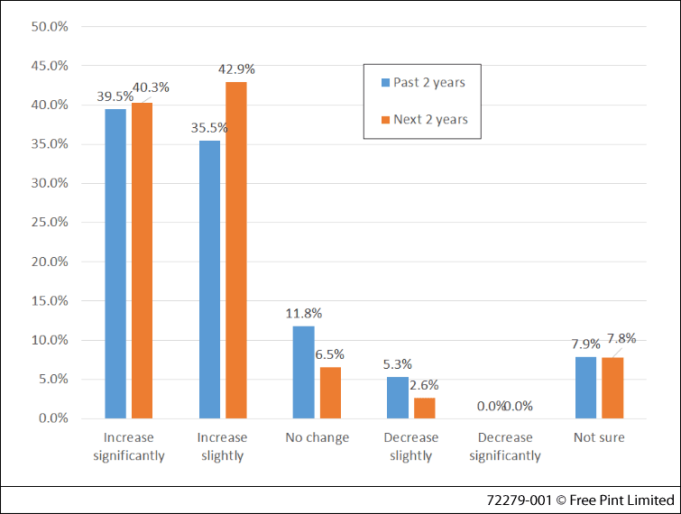 Figure 1: How has ebook usage changed in the past two years, and how do you expect it to change in the coming two years?
