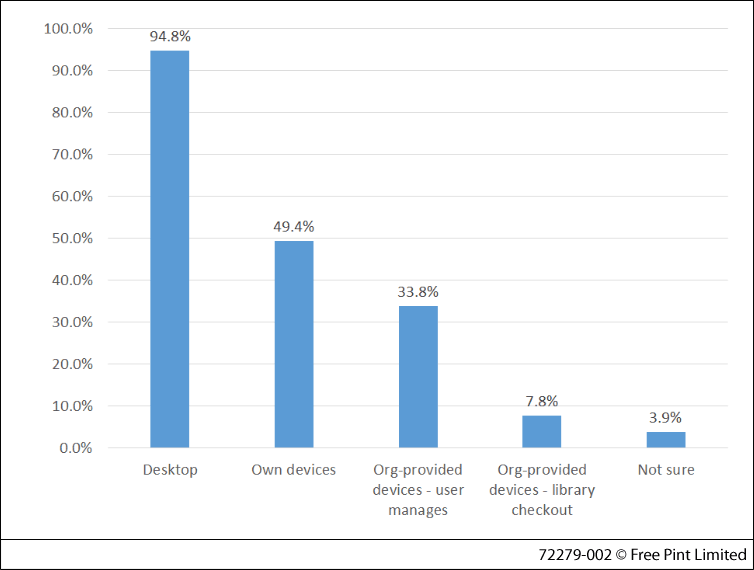Survey responses so far have been from a wide variety of business sectors including legal, professional services, banking & finance, manufacturing, biotech/pharmaceutical and engineering, as well as government settings. Respondents have commented on the types of devices used to consume ebooks and the significant increase in ebook usage in the corporate setting.