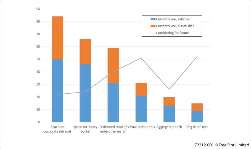 For nearly every tool mentioned, the number of satisfied users is nearly equalled by the number of dissatisfied users. And as for the future, the largest number of respondents so far are considering data visualisation tools and "big data" technologies.