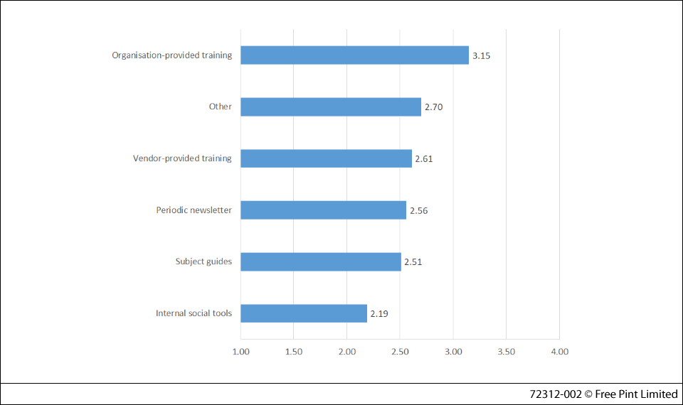 Organisation-provided training earns the highest average rating, but this is a resource-intensive way to influence users... not to mention the fact that users are hardly looking for training sessions to interrupt their busy workdays.