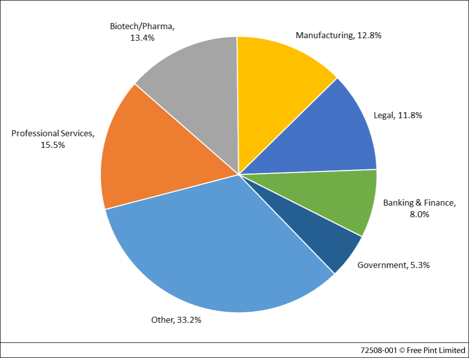 In addition to the FreePint community, the survey was made available to a number of divisions of the SLA (Special Libraries Association) and other user groups in order to provide as broad a cross-section as possible. Respondents were asked to indicate their type of organisation. The breadth of organisation type is clear from Figure 1.