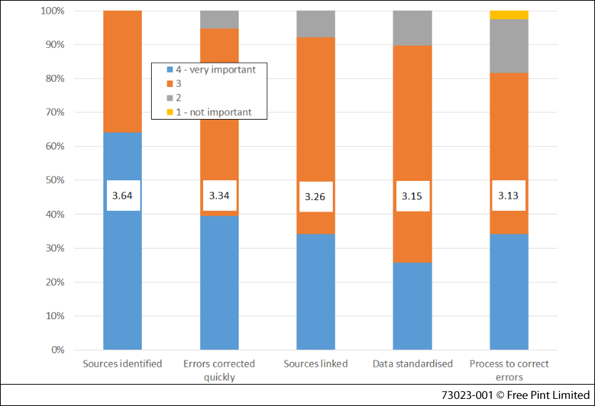 Interestingly, standardised and normalised information - one of the key selling points of many databases that offer private company data, has received the lowest percentage of "4" ratings to date (although with an overall average of 3.15, it's still clearly important).