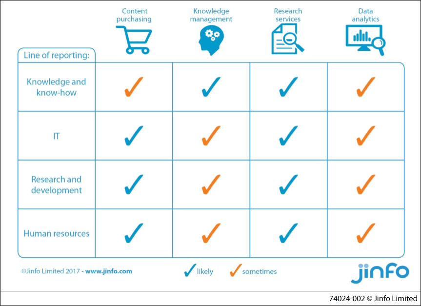 Figure 2: Likelihood of core services offered by information team, based on line of reporting
